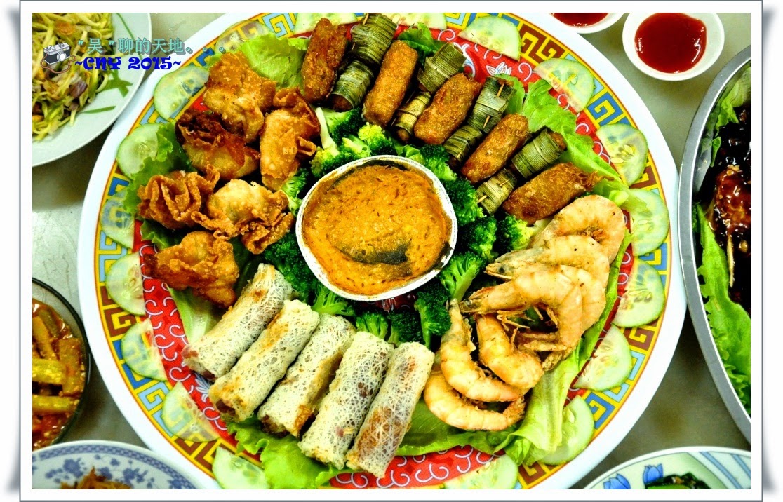 有这道由炸云吞、芋泥卷、炸虾、香草鸡和Otak-otak组成的《五福临门》。。。《年年有鱼》,有三味鱼。。。